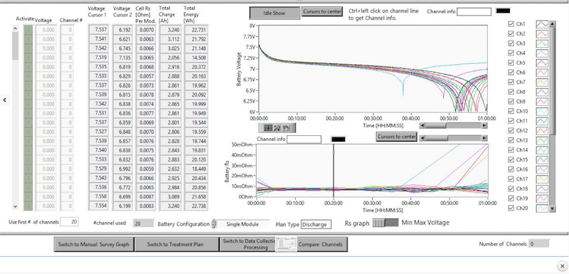 The module’s capacity is determined and the module is placed in an “inventory” of similar capacity modules. The remaining components of the battery are cleaned, reconditioned, and tested to ensure proper operation. The battery connections or “Bus Bars” are reconditioned to remove corrosion and ensure top performance and long battery life.